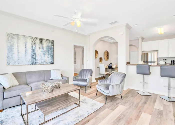 Experience ultimate comfort in 3Br Condo - Games Sauna - Near Disney villa's kitchen, supplied with coffee and tea making facilities, a fridge, and glassware. Church Street train station is also situated 80 minutes away by car.